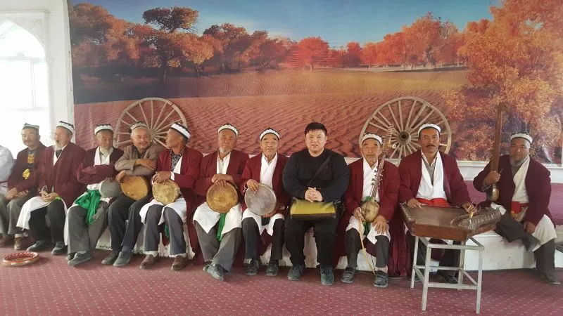 新疆采風(fēng)期間,與木卡姆藝人合影