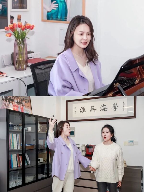 正因自己走過漫長艱辛的聲樂學習道路,如今作為人民教師,金瑤老師以身作則,對聲樂演唱有著極高的要求和嚴謹?shù)膽B(tài)度,是學生們學習的榜樣。在學生們看來,盡管金瑤老師非常忙碌,但她始終恪盡職守,根據(jù)每位學生不同的特點傳道授業(yè)解惑。“我們很心疼老師,她經(jīng)常休息時間不夠,上課高漲的熱情卻從來不減。”教學上,金瑤十分嚴苛。在課堂上,如果學生沒有達到她對聲樂演唱的心理預期,她都會停下來一遍遍給學生們做示范,帶著她們更放松自如地進入演唱狀態(tài)。正是因為有如此兢兢業(yè)業(yè)、精益求精的老師,“金家班”學生們歌譜上的筆記也都是滿滿當當。學生們都說,“從推開聲歌系B310教室的門,看到墻上‘學海無涯’匾額的那一刻起,就已經(jīng)把自己當成一位成熟的歌者了。”而時不時的琴房鞭策大會,也讓學生們更懂得珍惜時間,不負青春、以夢為馬,全力以赴地學好自己的專業(yè)技能。