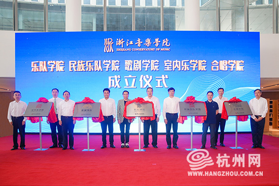 揭牌儀式后,樂隊學院、民族樂隊學院、歌劇學院、室內(nèi)樂學院和合唱學院五個新型表演學科教學平臺正式成立。國內(nèi)外一流音樂家、著名專家學者匯聚浙音,共同見證了學生學緣結(jié)構(gòu)豐富多元、充滿創(chuàng)新活力的國際性“藝術(shù)學院”的建立。