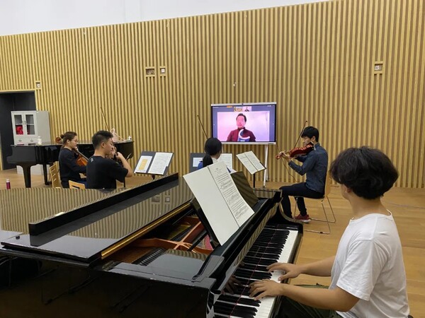 今年,室內(nèi)樂學(xué)院招收了來自全國各地的13名學(xué)生。就讀于美國曼尼斯音樂學(xué)院的大三學(xué)生邵潤澤,因為疫情無法前往美國進(jìn)行當(dāng)面授課,而室內(nèi)樂學(xué)院提供了一個很好的機(jī)會。“這近兩個月的學(xué)習(xí)讓我學(xué)會了如何更高效且合理地安排時間,如何不被緊密的排練、上課和演出壓垮,而是在不斷地激發(fā)音樂熱情。與同學(xué)在音樂里的交流,更是積累了一種奇妙的友情,這種友情是純粹的,因為經(jīng)過了音樂的淘洗,顯得更為冷靜、更為真誠。我們工作的時候,所有的個人偏見都被削去棱角而成為至高集體意識的一部分,此時再無個人與集體之分,所有的矛盾止步于音樂的理想國內(nèi)。”