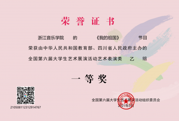 5月12日,以“奮斗·創(chuàng)新·奉獻(xiàn)”為主題的全國第六屆大學(xué)生藝術(shù)展演活動在四川成都落下帷幕。民族樂隊學(xué)院節(jié)目民族管弦樂合奏《我的祖國》,獲得全國第六屆大學(xué)生藝術(shù)展演一等獎及優(yōu)秀創(chuàng)作獎。