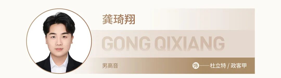 2024年6月在“世界輕歌劇音樂會”飾演輕歌劇《土匪的女兒》pietro,同場音樂會飾演輕歌劇《蝙蝠》中的愛森斯坦;2024年秋季以男高音考入浙江音樂學(xué)院歌劇學(xué)院,2024年底出演普契尼歌劇《圖蘭朵》飾演“L'imperatore”一角;在杭州大劇院2025年新年音樂會中再次飾演《圖蘭朵》“L'imperatore”一角。2025年在“星河呢喃”主題音樂會中飾演多尼采蒂歌劇《愛之甘醇》中的男主角nemorino角色,在“三棱鏡狂想曲”主題音樂會中分別飾演歌劇《蒂蕾西亞的瑪梅爾斯》中的lemari(丈夫)角色,歌劇《駱駝祥子》中的祥子一角。2025 年獲得“全國聲樂青音獎總展演”美聲一高校組的鉑金獎。
