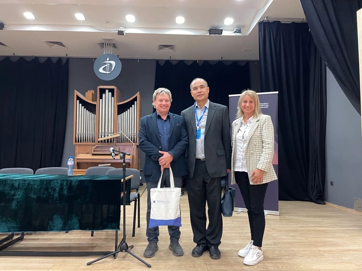 在保加利亞期間,王均寅一行訪(fǎng)問(wèn)了普羅夫迪夫音樂(lè)舞蹈美術(shù)學(xué)院和普羅夫迪夫農(nóng)業(yè)大學(xué)。在普羅夫迪夫音樂(lè)舞蹈美術(shù)學(xué)院,王均寅參加了學(xué)院管理層會(huì)談、觀(guān)看了博士生專(zhuān)場(chǎng)音樂(lè)會(huì),并與院長(zhǎng)讓·佩赫利瓦諾夫副教授就師生互訪(fǎng)、學(xué)術(shù)交流、文藝創(chuàng)演等方面開(kāi)展深入交流。在普羅夫迪夫農(nóng)業(yè)大學(xué),王均寅深入了解了該校藝術(shù)學(xué)科的發(fā)展情況,并期望能與該校開(kāi)展深入的交流與合作,為推動(dòng)中保教育合作的長(zhǎng)遠(yuǎn)發(fā)展作出新的貢獻(xiàn)。