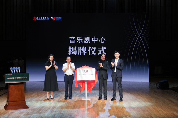 在張蕾與任書鑫的見證下,王瑞和李盾共同為“浙江音樂學(xué)院音樂劇中心”揭牌。