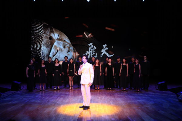 現(xiàn)場,浙音學(xué)生及優(yōu)秀音樂劇演員帶來音樂劇教學(xué)成果展示,表演了《飛天》《犧牲》《我在夢里見過你》等優(yōu)秀音樂劇作品。