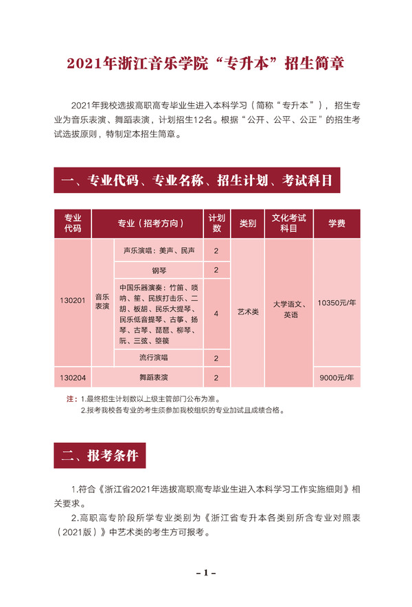 2021年浙江音樂學(xué)院“專升本”招生簡(jiǎn)章