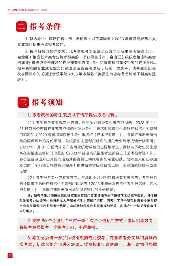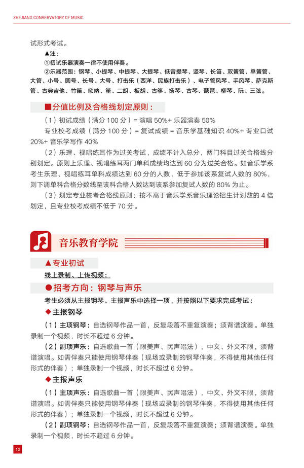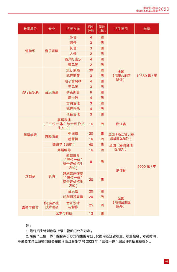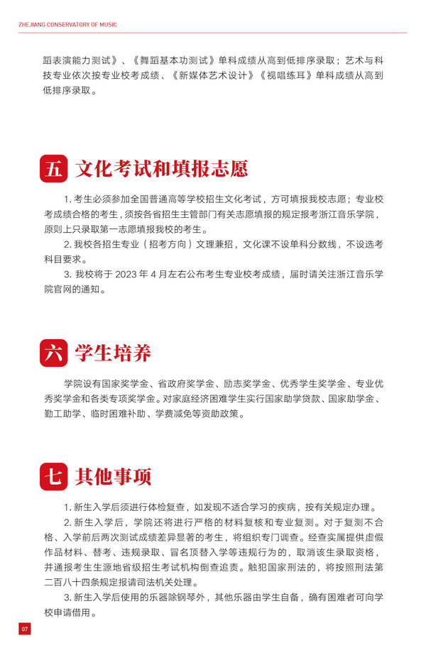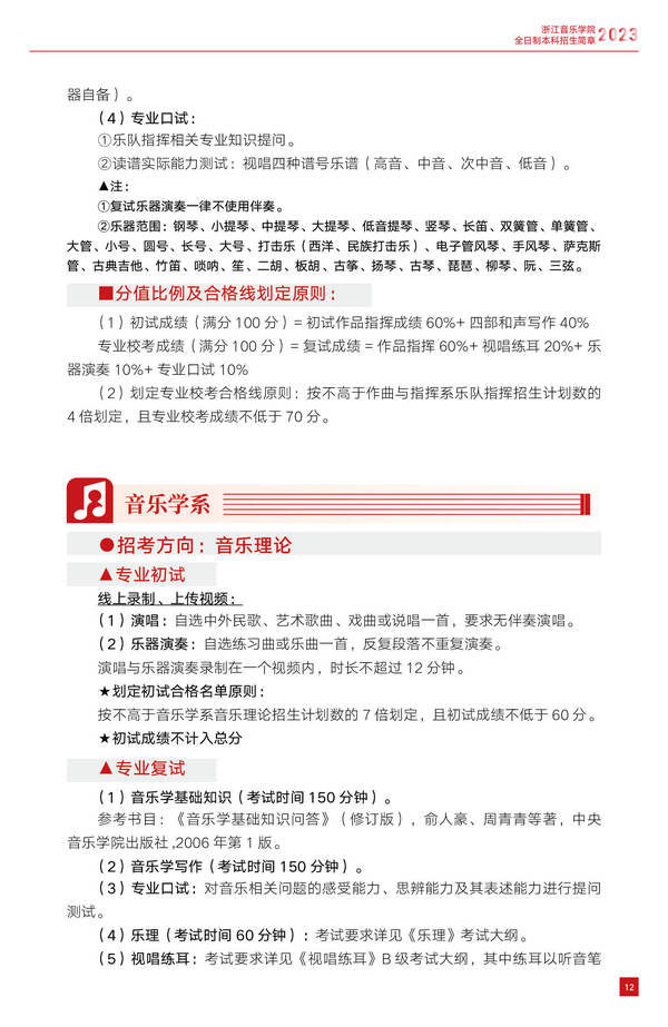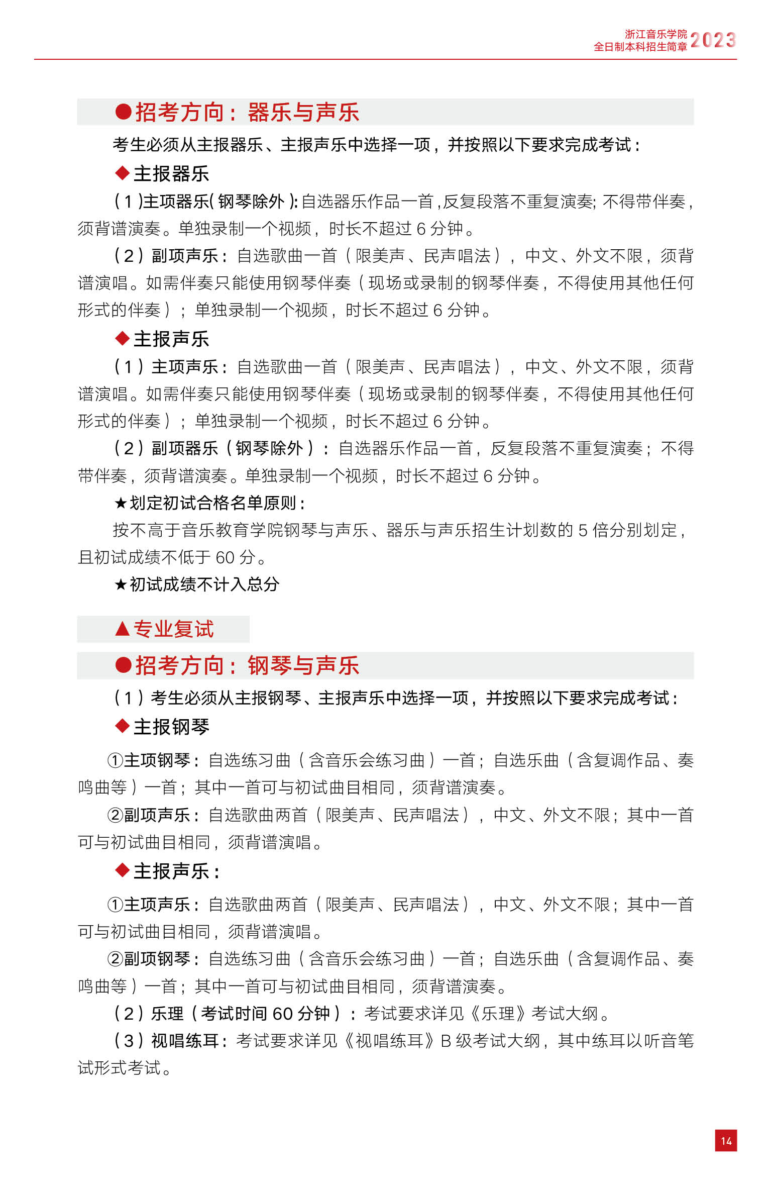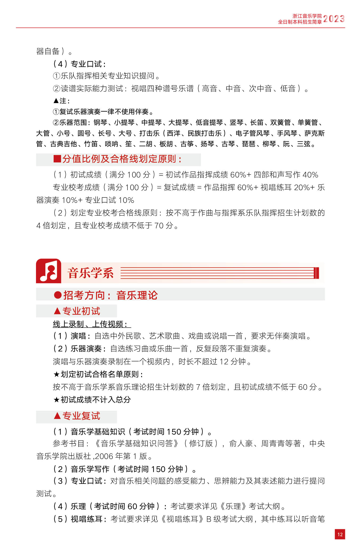 浙江音樂學(xué)院2023年全日制本科招生簡章