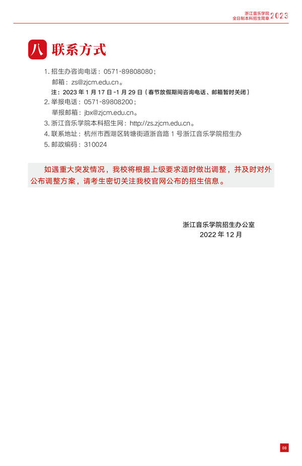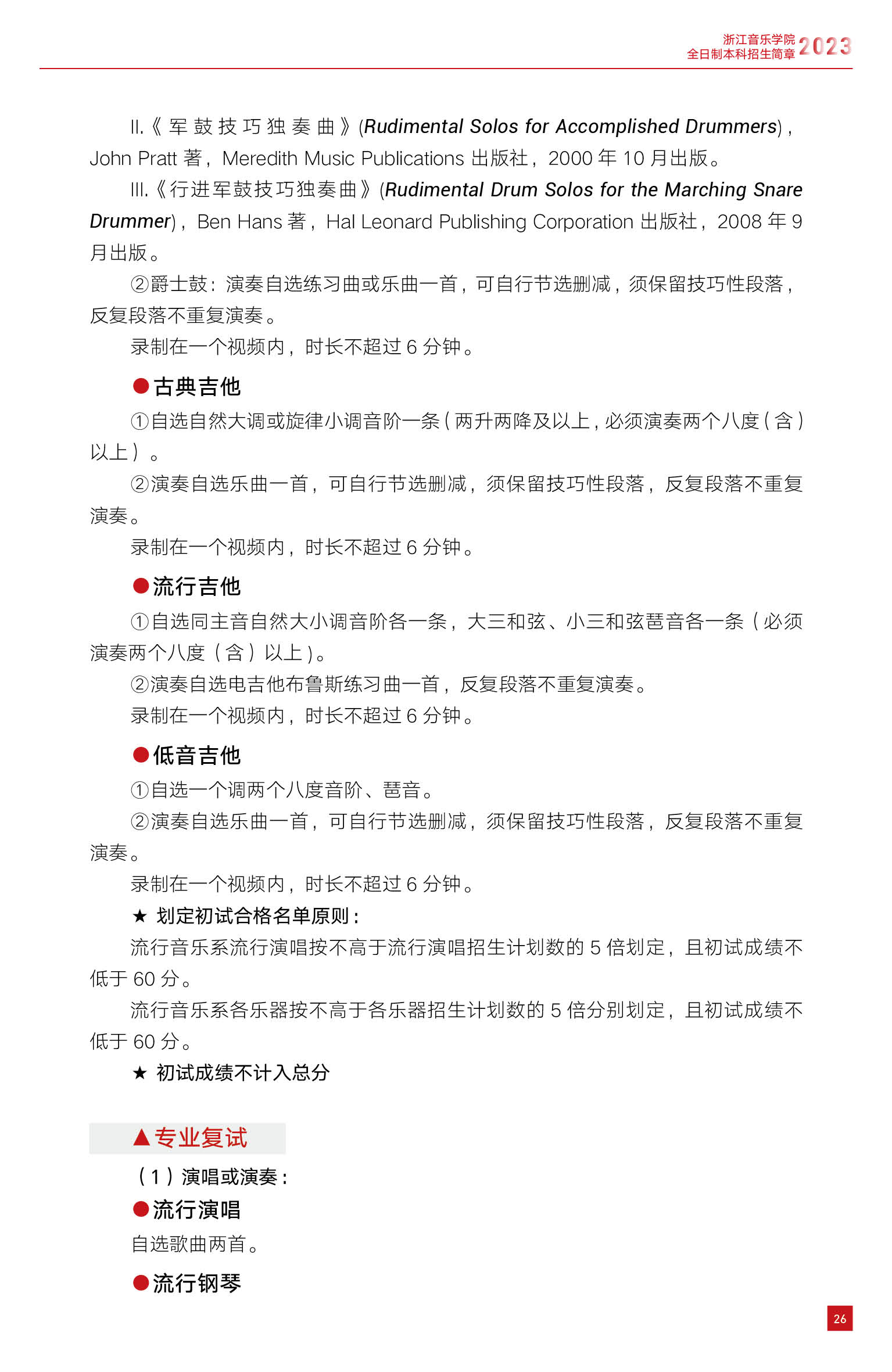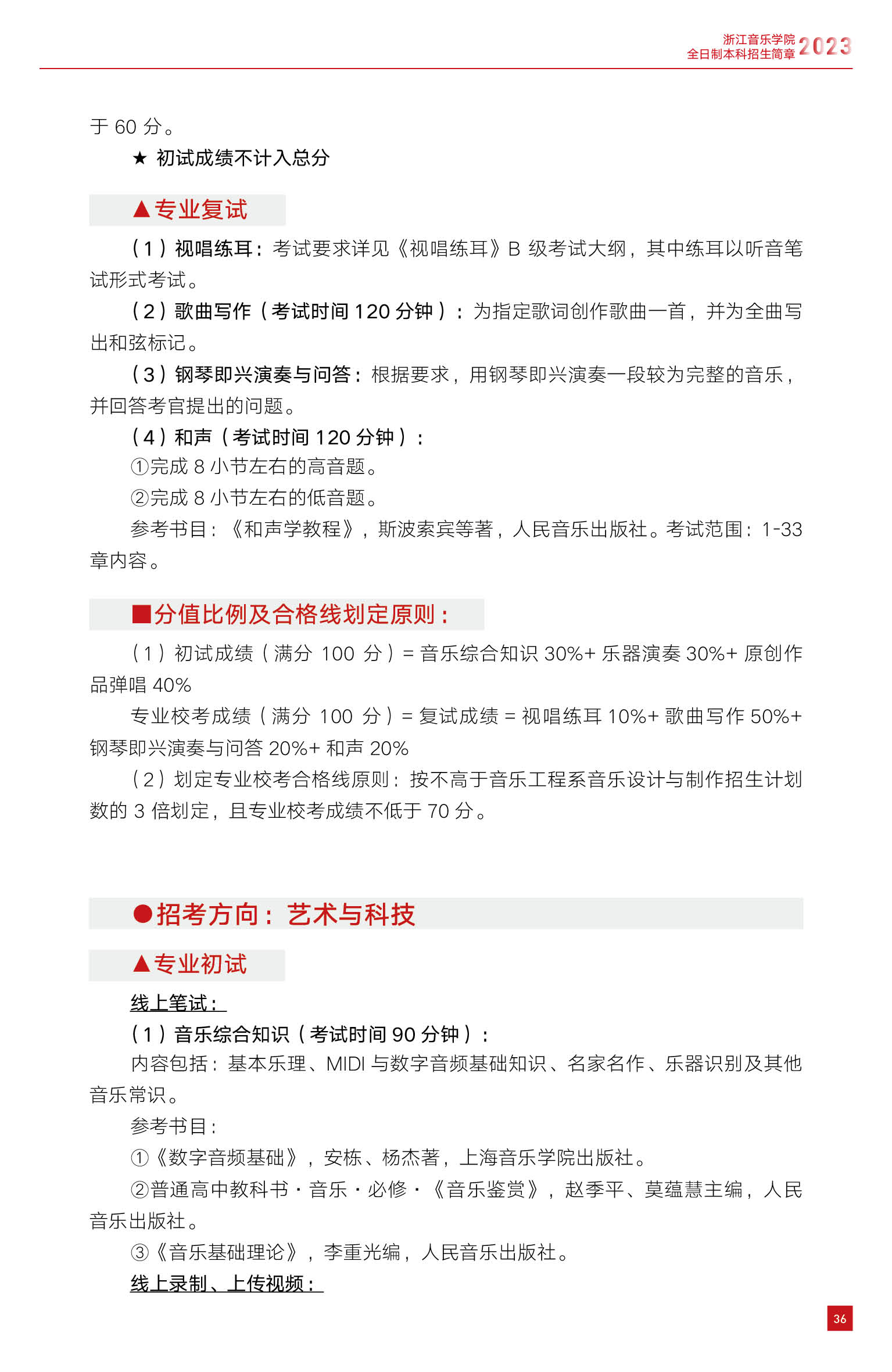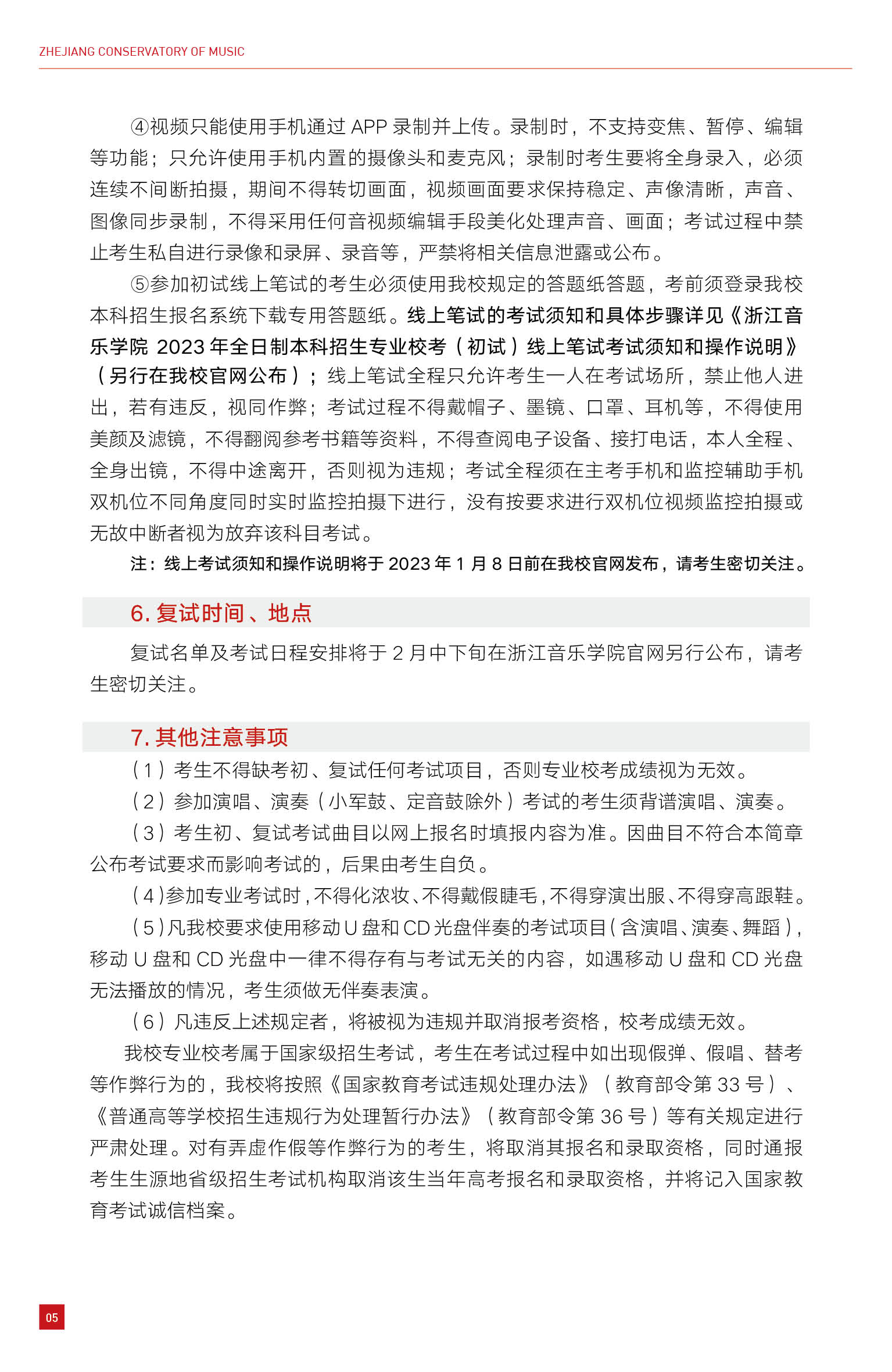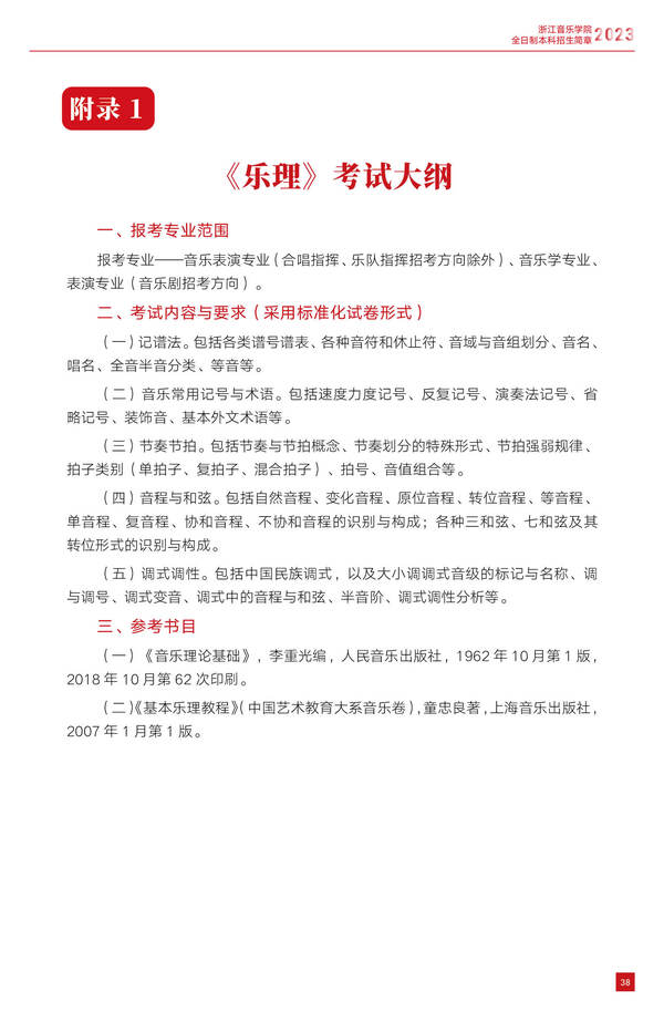 浙江音樂學(xué)院2023年全日制本科招生簡章