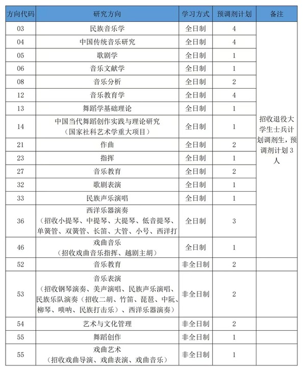 備注:考生在填報(bào)時(shí)需注明具體研究方向,如53音樂表演需備注鋼琴演奏/民族樂隊(duì)演奏(二胡)/西洋樂器演奏(單簧管)等。