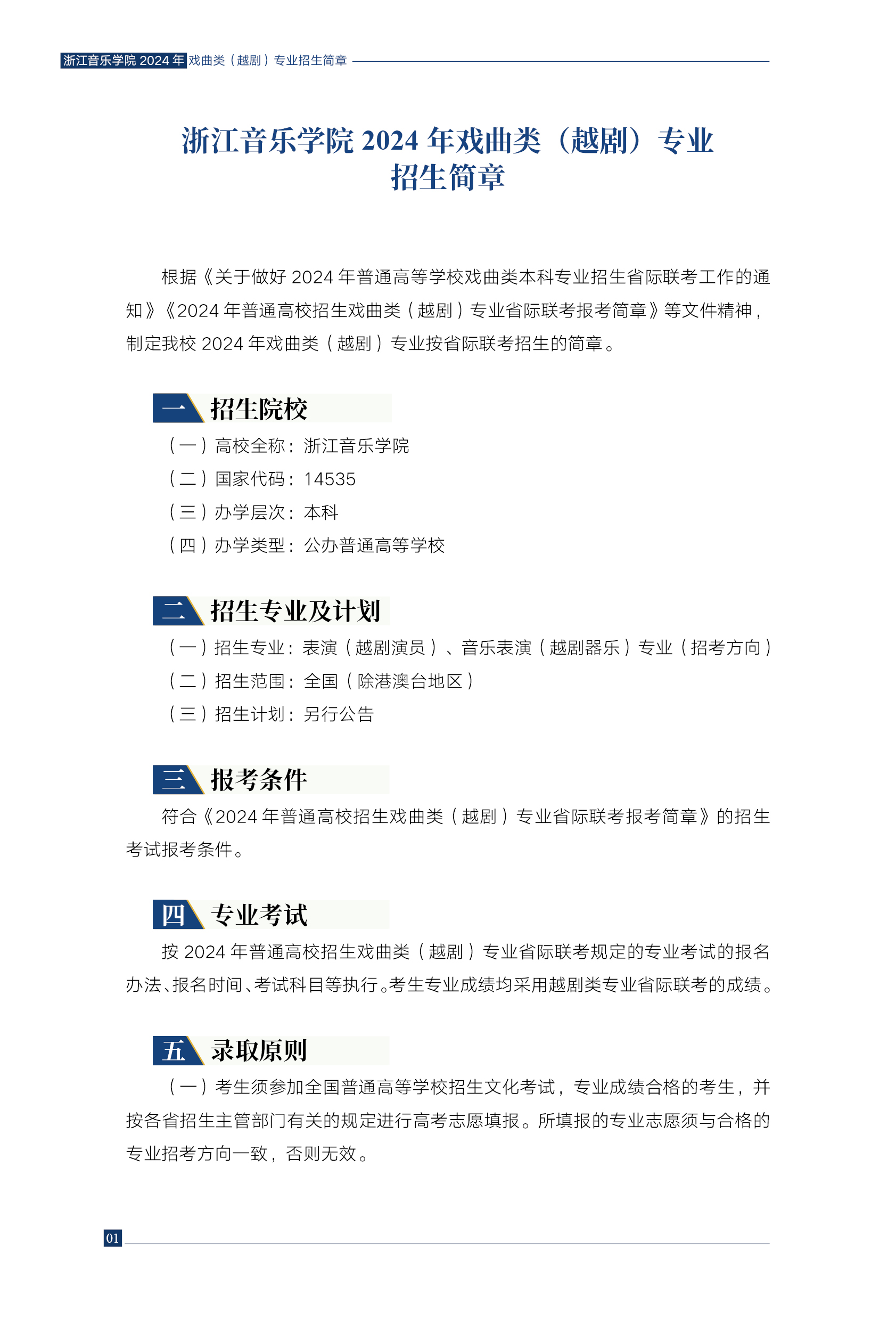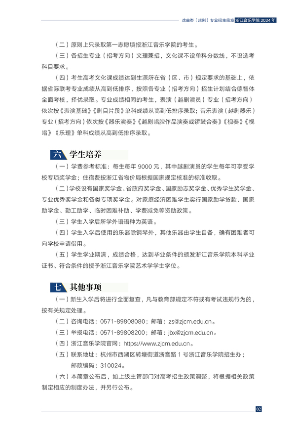 浙江音樂學院2024年戲曲類(越劇)專業(yè)招生簡章