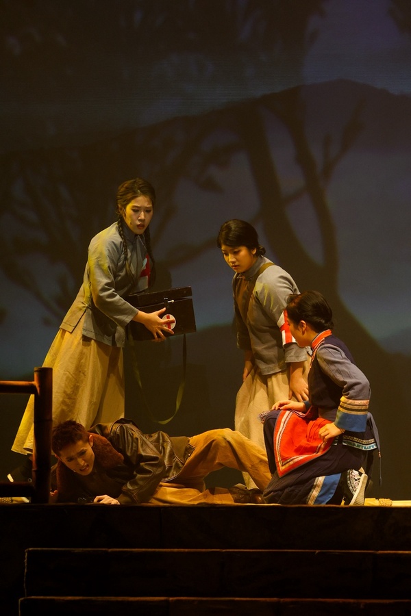 為泰順創(chuàng)作一部原創(chuàng)音樂劇的想法隨之成形。由吳滌牽頭,組建浙音師生為主體的主創(chuàng)團隊,深入畬鄉(xiāng)10余次。他們住在村民家中,學(xué)習(xí)畬語、記錄歌謠,跟著傳承人一針一線地學(xué)習(xí)畬繡,還走訪了數(shù)十位高齡村民、梳理檔案館史料,收集逾20萬字口述歷史素材。其中,畬族村民用嘹亮山歌傳遞重要情報、采集中草藥救治受傷戰(zhàn)士、將飛行員巧妙藏匿于深山地窖等關(guān)鍵細節(jié)被一一挖掘。這些都成為劇本創(chuàng)作最扎實的根基、最生動的素材。