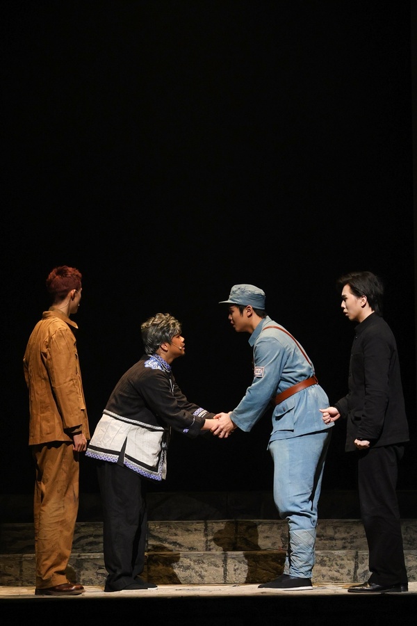 為了拉近和男主角之間那半個多世紀(jì)的時空距離,飾演青年張振華的范鴻欣同學(xué)主動找了很多抗戰(zhàn)時期的電影,并來到泰順、了解畬族的文化習(xí)俗,試著讓自己“回到”那個年代。“我們年紀(jì)相仿,都帶著一股不服輸?shù)膭艃?,滿懷一腔熱血,”他說,“我在舞臺上盡力去還原他那段人生,才明白什么叫‘精神的接續(xù)’。它不再只是一場戲,更是我們銘記歷史、致敬先輩的一種方式——英雄們走過的路真的有了回響。”