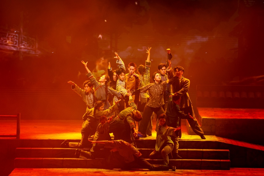 該部作品涵蓋了聲樂、舞蹈、戲劇表演等多個藝術(shù)領(lǐng)域,且采用了復(fù)雜的雙時空敘事結(jié)構(gòu),這對團隊之間的配合提出了極高的要求,演員、燈光、音效等各個團隊成員每天排練至深夜。據(jù)統(tǒng)計,團隊累計完成集中排練超60場次,最終從最初的“各自為戰(zhàn)”磨合成后期的“默契共振”。