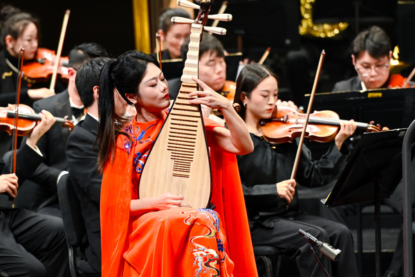 音樂會以一曲激昂的《魯斯蘭與柳德米拉》序曲激昂開場。隨后,古箏協(xié)奏《望云賦》以清透靈動的音韻勾勒出云卷云舒的東方意境,歌劇選段《愛永在》則以深情的旋律吟詠出真摯雋永的家國情懷。琵琶協(xié)奏《絲路飛天》以繁復(fù)的指法與豐富的音色變化,再現(xiàn)絲綢之路上的風物與遐思?!而B兒在風中歌唱》以極具藝術(shù)感染力的演繹,將深切而克制的悲情浸透于每個音符之中,直抵人心?!睹鐜X飛歌》一轉(zhuǎn)情緒,以清亮悠揚的嗓音喚醒山野間蓬勃的生命氣息,宛如晨光穿透層林。鋼琴與樂團奏響《保衛(wèi)黃河》,鏗鏘有力的琴聲如浪潮奔涌,澎湃的激情與厚重的民族氣魄震撼人心。