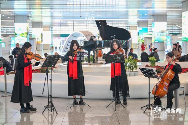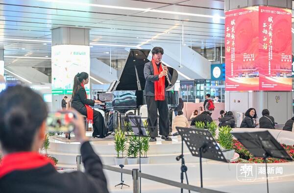 12月31日,杭州西站候車大廳內(nèi),一場(chǎng)新年音樂快閃精彩上演。浙江音樂學(xué)院鋼琴系與管弦系的師生們,以悠揚(yáng)的琴聲與動(dòng)人的旋律,為匆匆往來的旅客送上了一份溫暖的新年祝福。