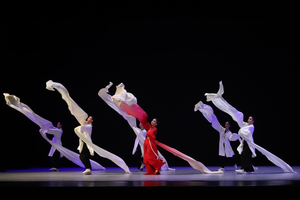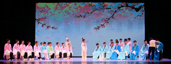 演出中,金彩芳與學(xué)生共同呈現(xiàn)《牡丹亭·幽媾》《蝴蝶夢·劈棺》《紅樓夢·葬花》等多部經(jīng)典折子戲,并在尾聲部分帶領(lǐng)花旦學(xué)生展示水袖集體表演,贏得現(xiàn)場師生熱烈反響。