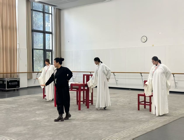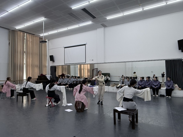 活動期間,一套層次分明、內(nèi)容詳實(shí)的課程體系成為提升學(xué)生專業(yè)能力的核心載體,實(shí)現(xiàn)了理論解析與實(shí)踐指導(dǎo)的有機(jī)融合。越劇表演藝術(shù)家、中國戲劇“梅花獎”獲得者陳飛帶來的《基本功對角色塑造的重要性——以越劇<女吊>為例》專題講座,結(jié)合經(jīng)典劇目片段細(xì)致拆解,讓學(xué)生深刻領(lǐng)會到基本功訓(xùn)練在角色情感傳遞與形象塑造中的基石作用;原浙江省文化藝術(shù)研究院戲劇研究所所長朱為總研究員主講的《戲曲音樂伴奏的舞臺形象塑造與演出地位》,重新定義“伴奏僅為輔助”的傳統(tǒng)認(rèn)知,系統(tǒng)闡釋了樂隊(duì)與演員“協(xié)同共生、相互成就”的舞臺關(guān)系;王一敏、金彩芳、李公律3位資深教師聯(lián)合開設(shè)的劇目公開課,采用“分組演練+即時點(diǎn)評”的互動模式,精準(zhǔn)破解學(xué)生在劇目表演中的細(xì)節(jié)難題;中國藝術(shù)研究院研究員張之薇的《梅蘭芳表演體系探尋》分享了梅蘭芳大師從出身到學(xué)藝,再到“梅派”藝術(shù)構(gòu)建、“移步不換形”理念的提出,以點(diǎn)帶面讓學(xué)生懂得“守正創(chuàng)新”的本質(zhì)所在。教師周派的《走近戲劇藝術(shù),發(fā)掘生活之美》與葛家川的《流行音樂演唱鑒賞》則實(shí)現(xiàn)了跨領(lǐng)域、跨劇種的知識賦能,助力學(xué)生構(gòu)建多元立體的藝術(shù)認(rèn)知框架。