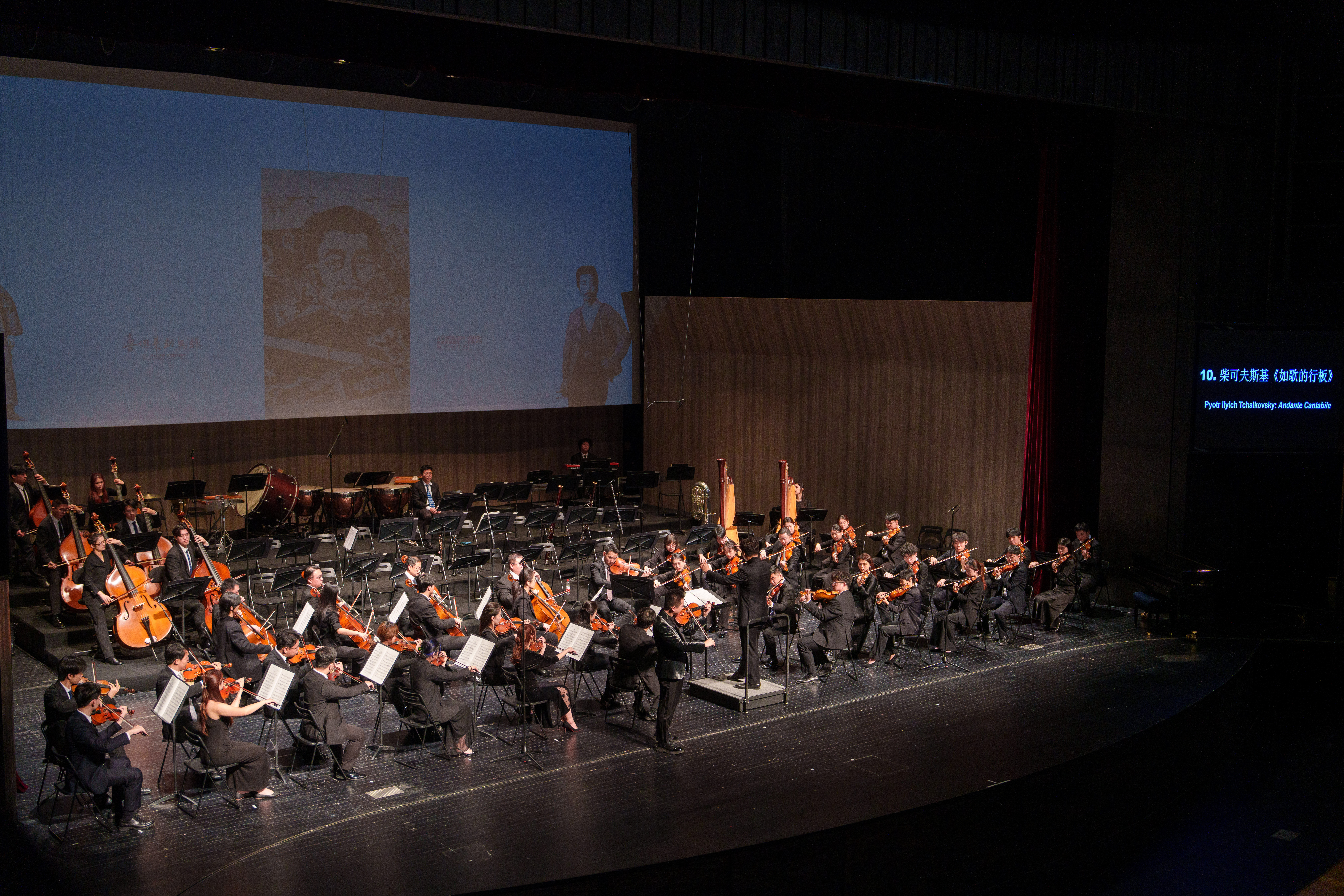 下半場轉(zhuǎn)入文化交融的高光時刻。“小提琴獨奏旋律”與高平彈奏的《未題No.1》,將木心先生未公開的音樂遺稿首次帶上十周年舞臺;歌曲《天涯歌女》由女高音楊陳秀一本人編配管弦樂團(tuán)伴奏,讓民國經(jīng)典旋律煥發(fā)當(dāng)代活力;而貝多芬《第九交響曲》第二樂章的磅礴氣勢與莫里康內(nèi)《天堂電影院》主題曲的懷舊情愫,共同勾勒出藝術(shù)穿越時空的永恒魅力。當(dāng)最后一曲格林卡《魯斯蘭與柳德米拉》序曲奏響時,全場掌聲雷動。