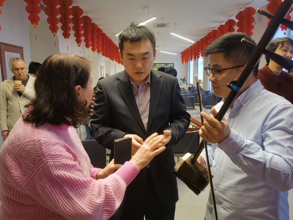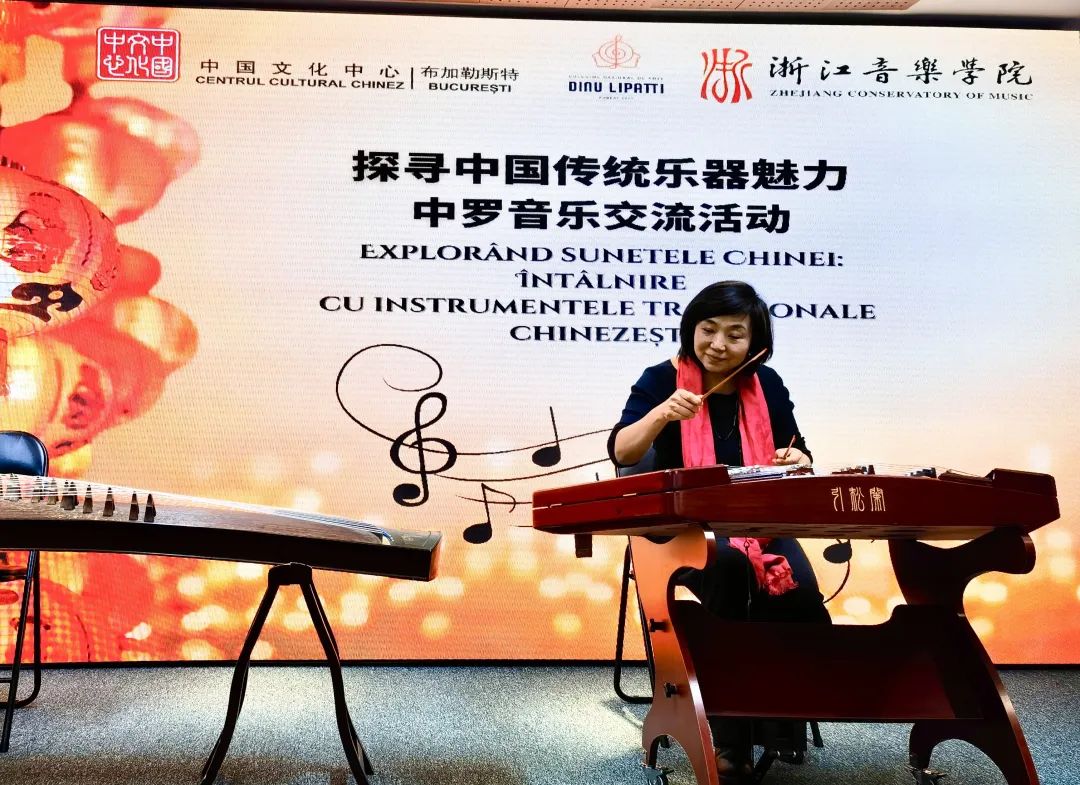 在羅馬尼亞期間,聞鶯江南絲竹樂團還與羅馬尼亞迪努?利帕蒂國家音樂學院聯(lián)合舉辦“探尋中國傳統(tǒng)樂器奧秘”文化交流活動。國樂系教師向羅馬尼亞學生介紹了揚琴、二胡等傳統(tǒng)樂器知識并演奏樂曲,學生們興趣盎然?;顒咏Y束后,雙方還就開展國樂合作交流事宜進行探討商洽。