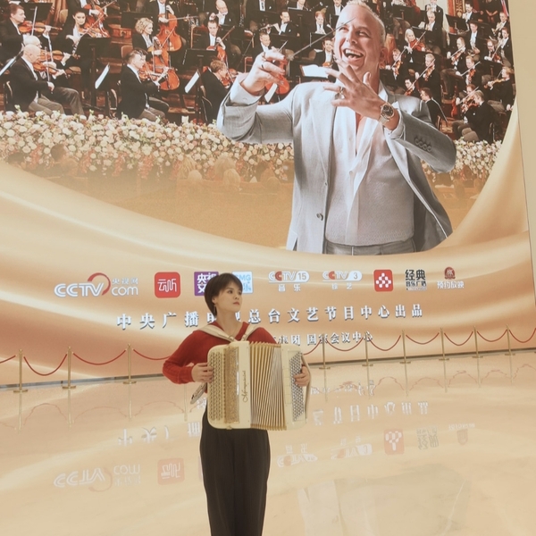 今年是著名影片《音樂之聲》上映60周年,在2026年維也納新年音樂會啟幕之際,流行音樂系教師吳雯怡攜手著名音樂劇演員扎西頓珠聯(lián)袂為觀眾帶來了音樂之聲里的經(jīng)典插曲《雪絨花》。吳雯怡以細(xì)膩深沉的手風(fēng)琴伴奏,與扎西頓珠溫暖醇厚的演唱相得益彰,賦予這首跨越半個世紀(jì)的經(jīng)典曲目以新的藝術(shù)感染力。隨后,吳雯怡還以手風(fēng)琴即興演繹了維也納新年音樂會的標(biāo)志性作品《溜冰圓舞曲》,靈動的節(jié)奏處理和豐富的音色變化,將冰上舞蹈的流暢飄逸與圓舞曲的優(yōu)雅韻律完美融合,為觀眾呈現(xiàn)了一段充滿活力與巧思的音樂畫面。