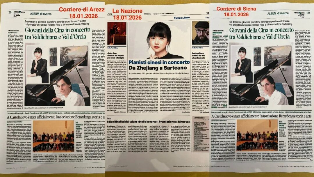 在圣喬瓦尼·瓦爾達(dá)諾演出期間,團(tuán)隊(duì)受到當(dāng)?shù)厥虚L(zhǎng)瓦倫蒂娜·瓦迪(Valentina Vadi)及文化部門官員的熱情接見(jiàn)。雙方就中外文化藝術(shù)交流展開(kāi)簡(jiǎn)短友好交流,市長(zhǎng)對(duì)浙音學(xué)生的演奏水平給予高度認(rèn)可,并對(duì)兩地后續(xù)文化交流表達(dá)了強(qiáng)烈的期待。意大利《La Nazione》《Corriere di Siena》等主流媒體也紛紛聚焦報(bào)道,詳細(xì)介紹了浙音學(xué)子的演出情況及現(xiàn)場(chǎng)反響,進(jìn)一步擴(kuò)大了此次巡演的影響力。
